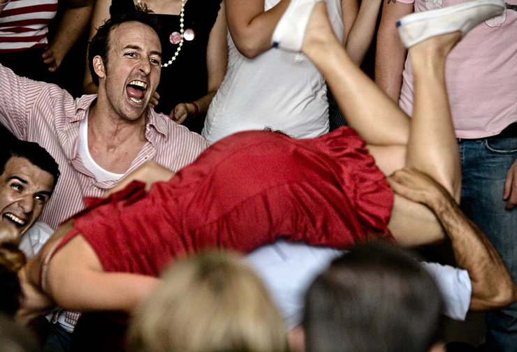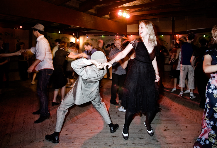 But every summer the village comes to life when hundreds of people from all continents come here to dance lindy hop at the annual Herräng dance camp.