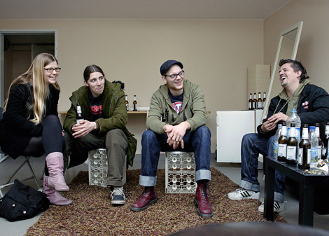 From left: Signe, Peter, Deichkind and Anders. That day, Signe has traveled from Denmark to Berlin to spend a couple of days with her boyfriend, Peter, who – apart from being a passionate fan of the Danish football team AGF – is the second of HateSphere’s two guitarists. Deichkind is HateSphere’s German roadie.