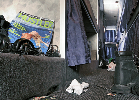 HateSphere’s front man, Jacob, has booked a hotel room in Hamburg for the following day when he’s going to spend time with his girlfriend before the evening’s concert. The Hustler magazine in his bunk and the paper towel on the floor suggest how happy he’ll be to see her.